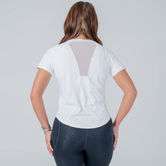 White Mesh Short Sleeve Sports Top